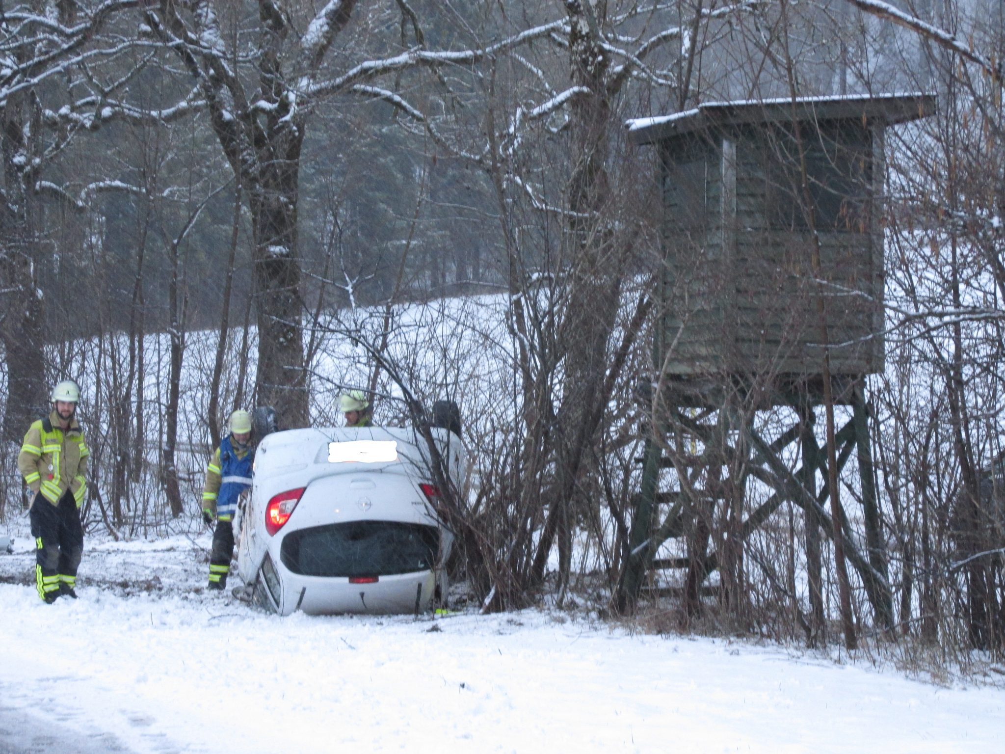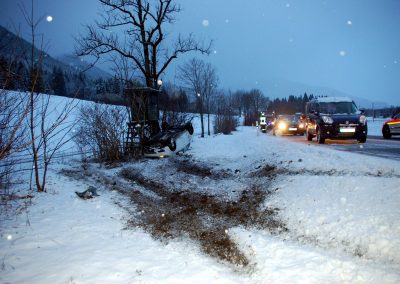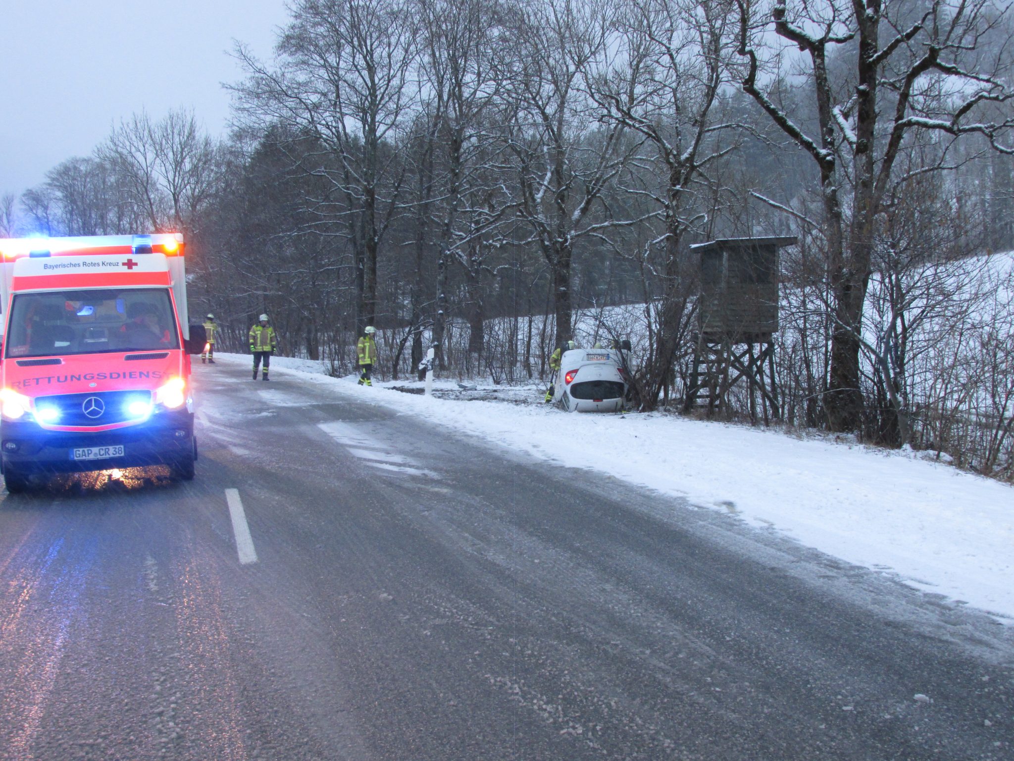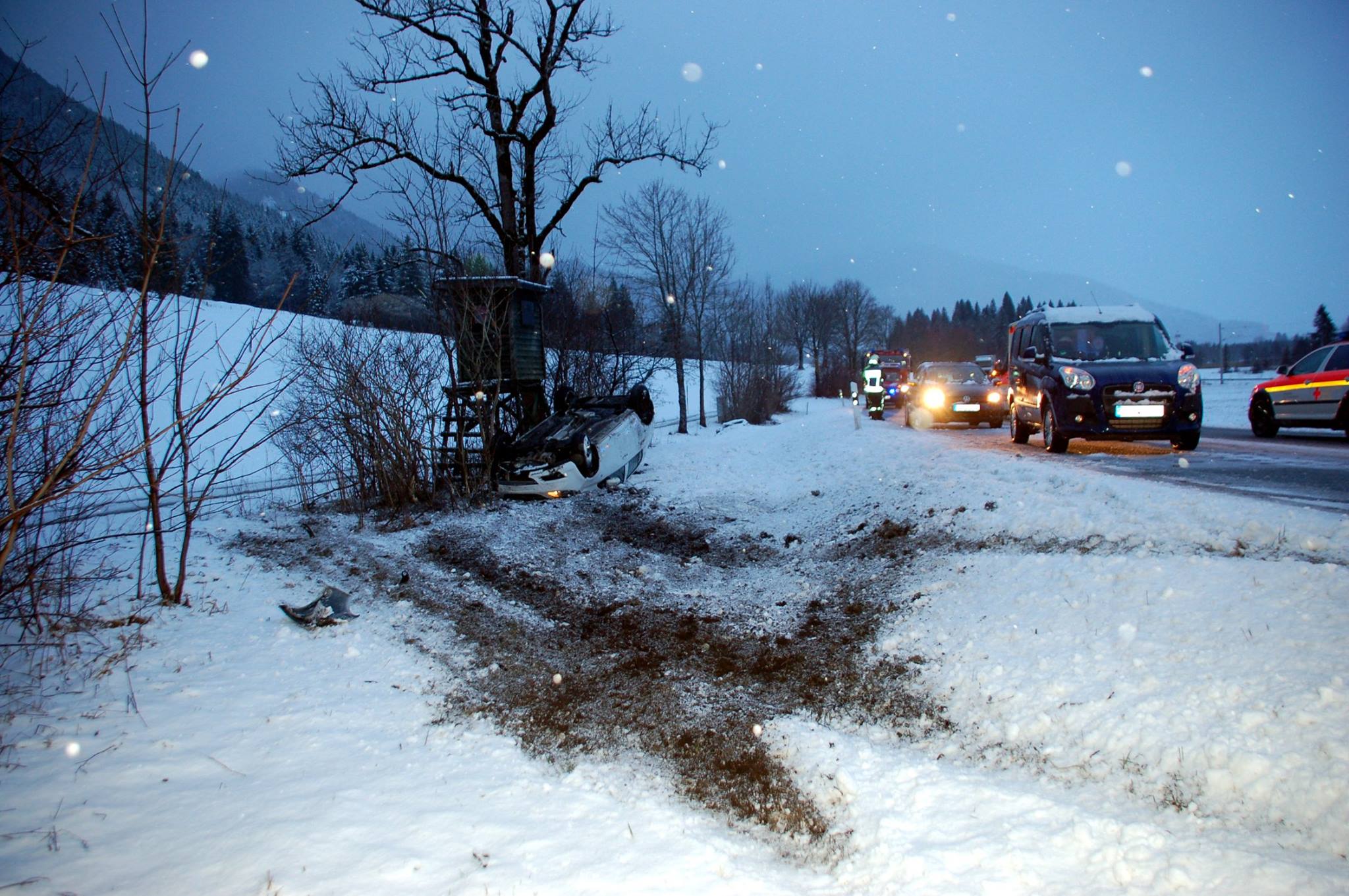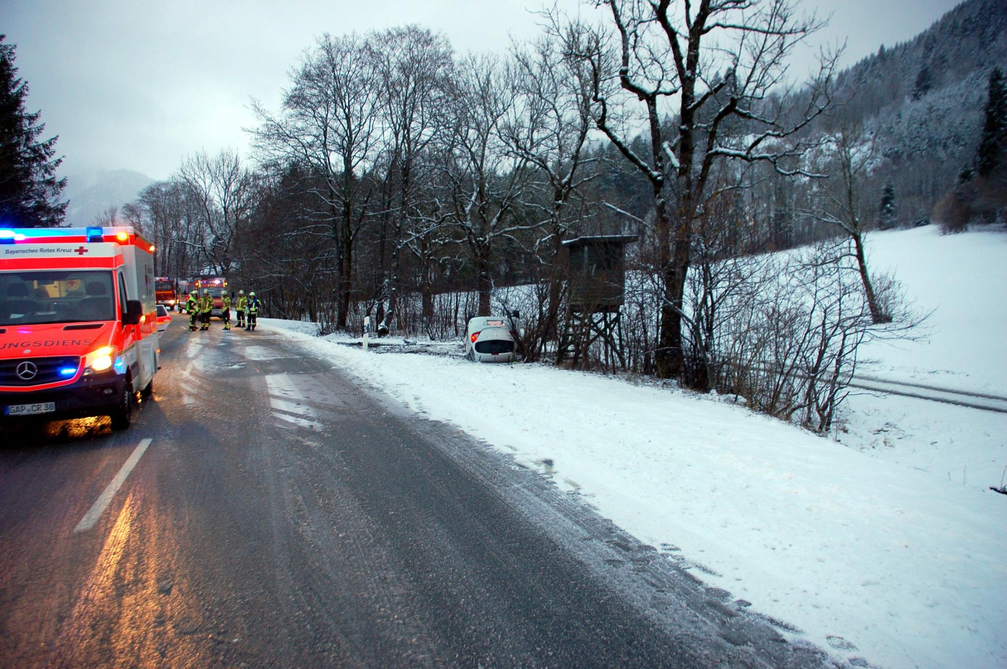 Das Fahrzeug ist von der Fahrbahn abgekommen und hatte sich überschlagen. Die Fahrerin war beim Eintreffen der Rettungskräfte aus dem Fahrzeug und wurde vom Rettungsdienst versorgt. Mit leichten Verletzungen wurde sie mit dem RTW ins Unfallklinikum Murnau gebracht.
