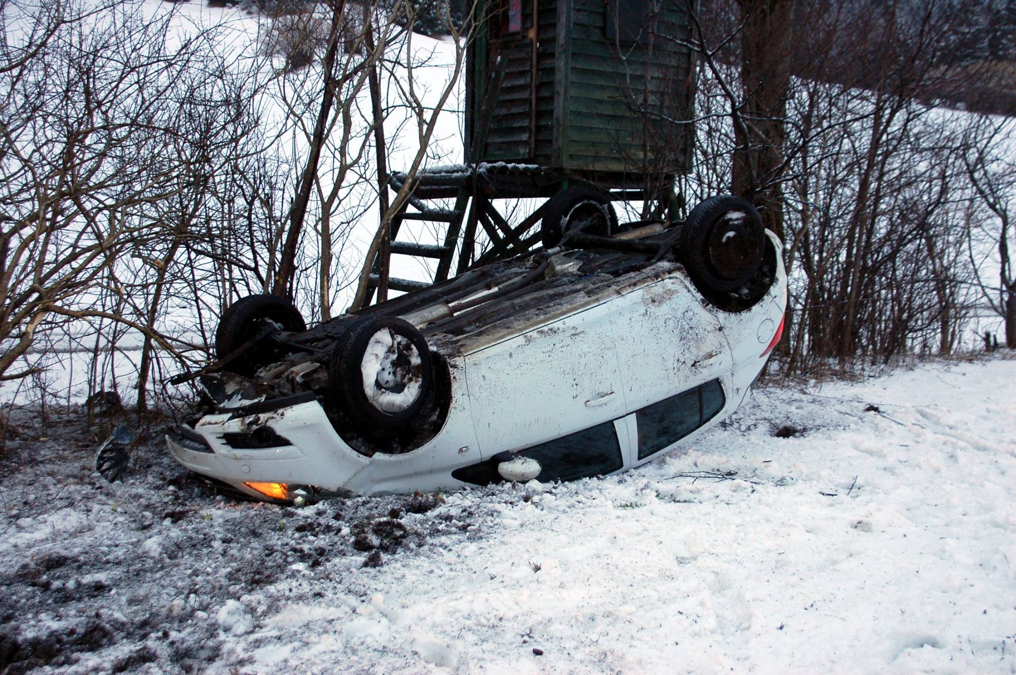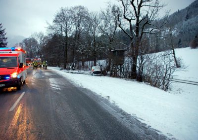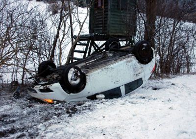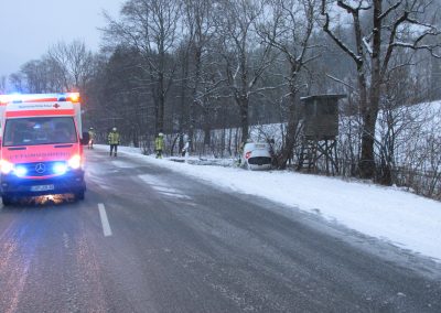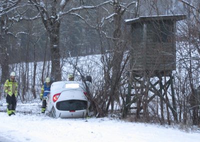PKW im Straßengraben. Verkehrslenkung und Unterstützung des Abschleppdienstes. Bei einer Temperatur von -19 C ein harter Job.